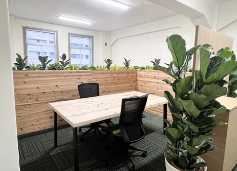 オフィスの内装を木質化するのも有効な方法です。木質化とは、木の温もりや風合いをいかした素材を用いた什器を導入することを指します。木の手ざわり・香りが五感で感じられるため、オフィス緑化と組み合わせて導入することでいっそう効果を高められるでしょう。