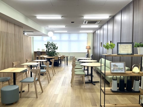 リフレッシュエリアのリニューアルに伴い、緑化&木質化を取り入れた事例です。自然と調和した空間をコンセプトとして掲げ、社員にとって癒しの場を提供するとともに、コミュニケーションの活性化を促すリフレッシュエリアを目指しました。自然に囲まれた空間は休憩スペースとしてだけでなく、多くの社員やインターン生の交流の場としても活用されています。会社側から「この場所を使ってください」と指示しなくても、社員が自発的に集まり、自然と会話が生まれる空間となりました。