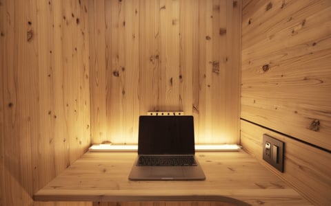 木の質感によるリラックス効果が、閉塞感や圧迫感を覚えにくい空間をもたらしています。これにより、長時間の面談や作業にも快適に取り組めるようになりました。オンライン会議の機会が多い事業者様に適した個室ブースの活用例といえるでしょう。