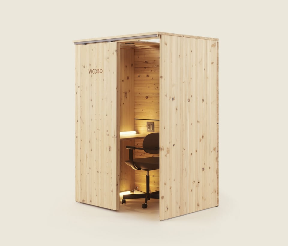 木の温もりが感じられる無垢材を使用したセミクローズ型個室ブース「WOOBO」を紹介します。WOOBOの主な特長を見ていきましょう。