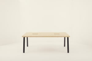 株式会社アンペール様では、執務室内の4席分のスペースが未使用の什器置き場となっていました。このスペースを多彩な目的に活用できる空間へとリニューアル。自然素材のパーティションとテーブルを配置することで、新たな共有スペースが生まれました。