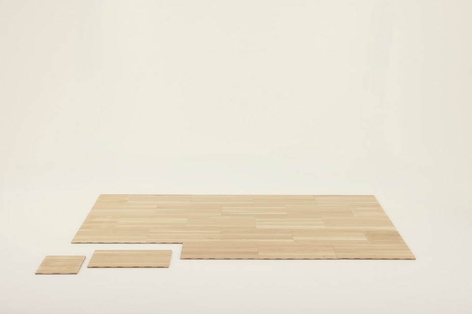 国産ナラ材をはじめ、天然木で作られたはめこみ式のフローリングです。工事不要で簡単に設置でき、エントランスを木の温もりが感じられる心地よい空間へと早変わりさせられます。壁や床に固定しないはめこみ式のため、設置後も簡単に解体でき、繰り返し使えることも大きなメリットです。エントランスの木質化を手軽に実現したい事業者様にも適しています。